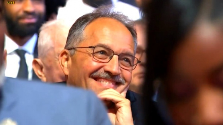 霍华德在演讲中感谢大范甘迪,他说道:“斯坦-范甘迪,我不知道你是否在这里。在这儿呢。嘿,我只想说,因为你,我今天才能够进入名人堂。没有范甘迪就没有德怀特-霍华德。”