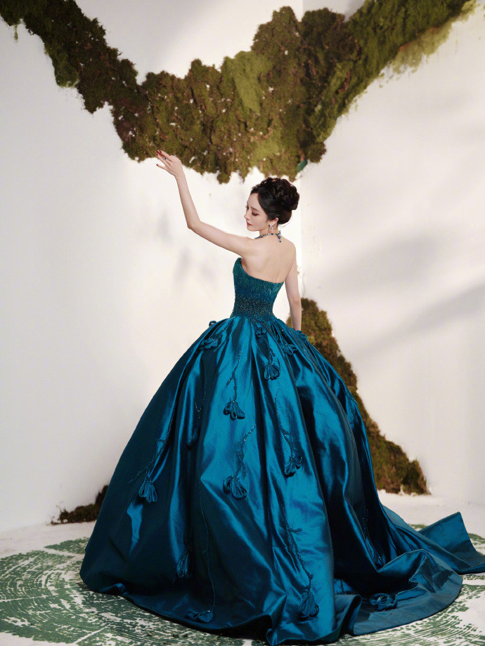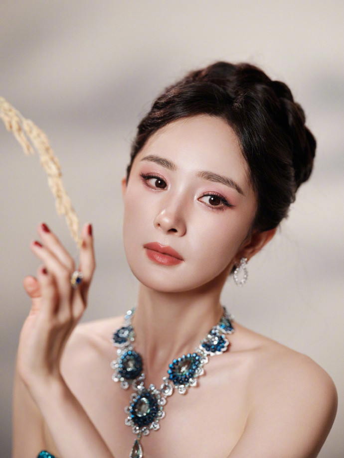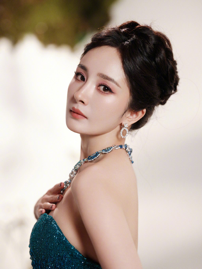 先来看看大幂幂的怼脸近照,这盛世美颜,真的是美得太权威了。下图中,大幂幂化着精致的红唇美妆,配上一头优雅十足的盘发,真的是美到心坎儿上啦。为了搭配这身蓝色的抹胸长裙,大幂幂还戴了一条相同颜色的项链,衬得她更加优雅迷人了。