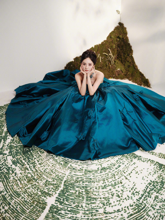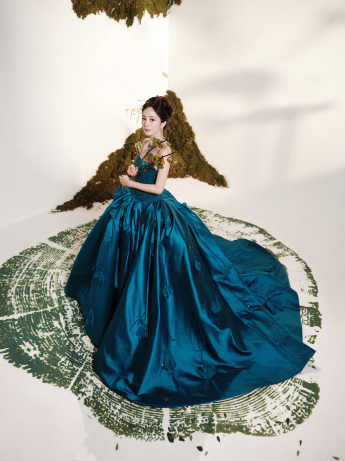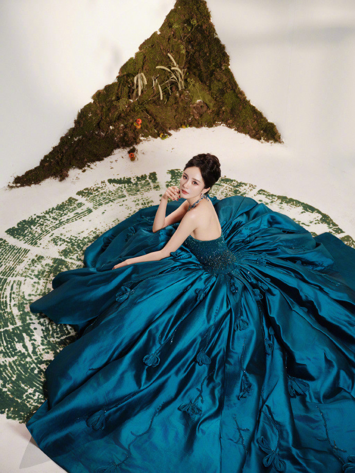 俯拍视角里,大幂幂的裙摆被完全撑开,三十斤多裙子的重量似乎一下子就具象化了。大幂幂穿着这身裙子就像画里走出来的仙女一样,又美又养眼,美绝了。