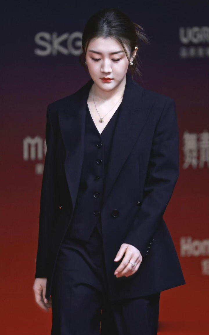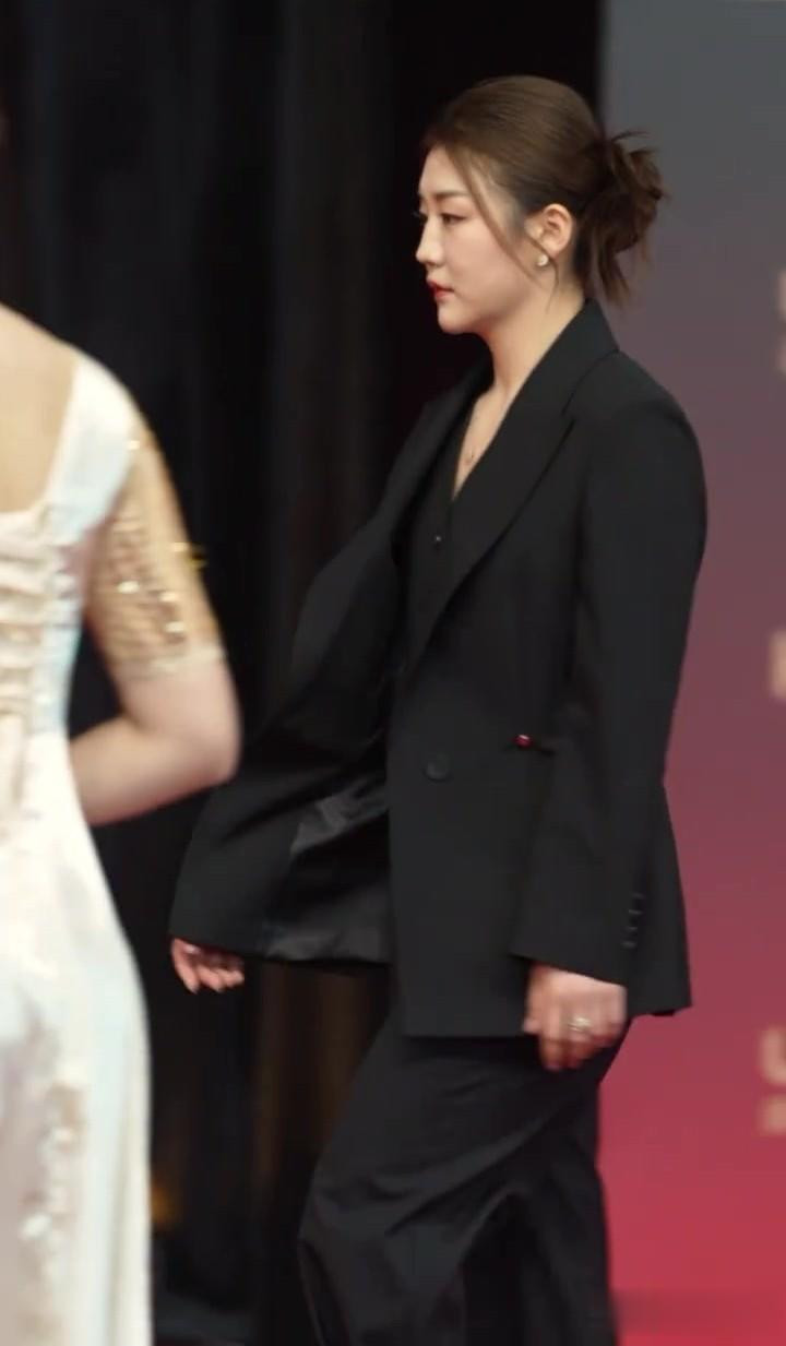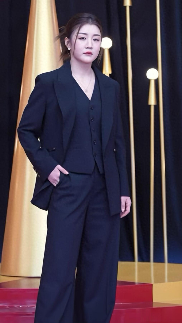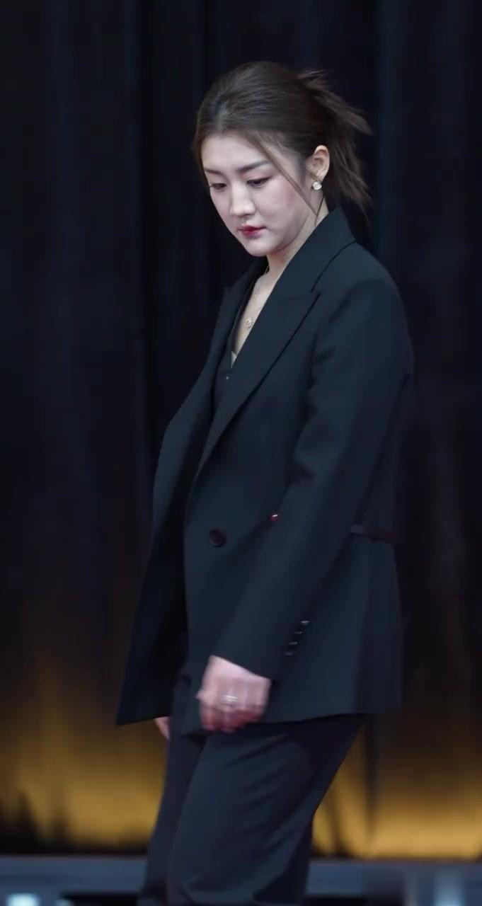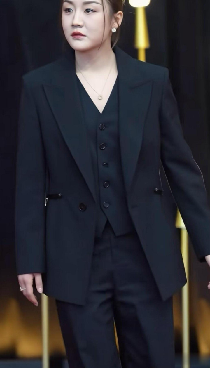 陈梦出席代言人影响力盛典红毯, 穿黑色西服套装, 妥妥大女主气场