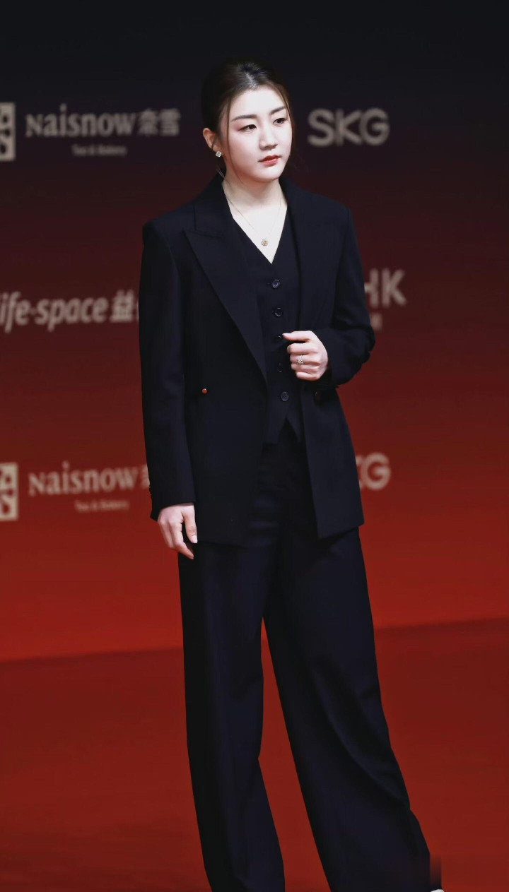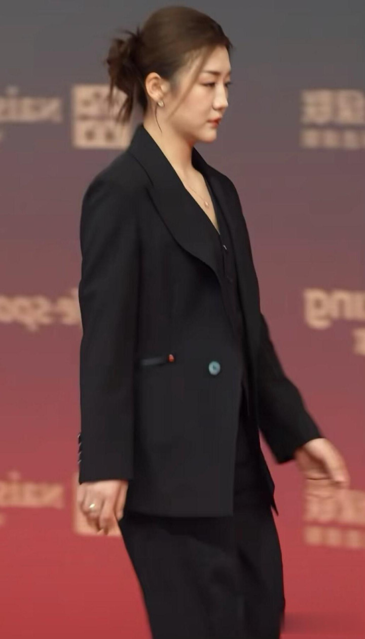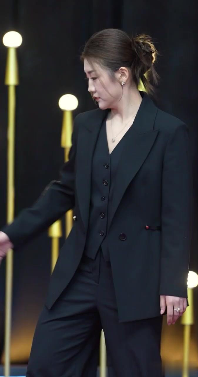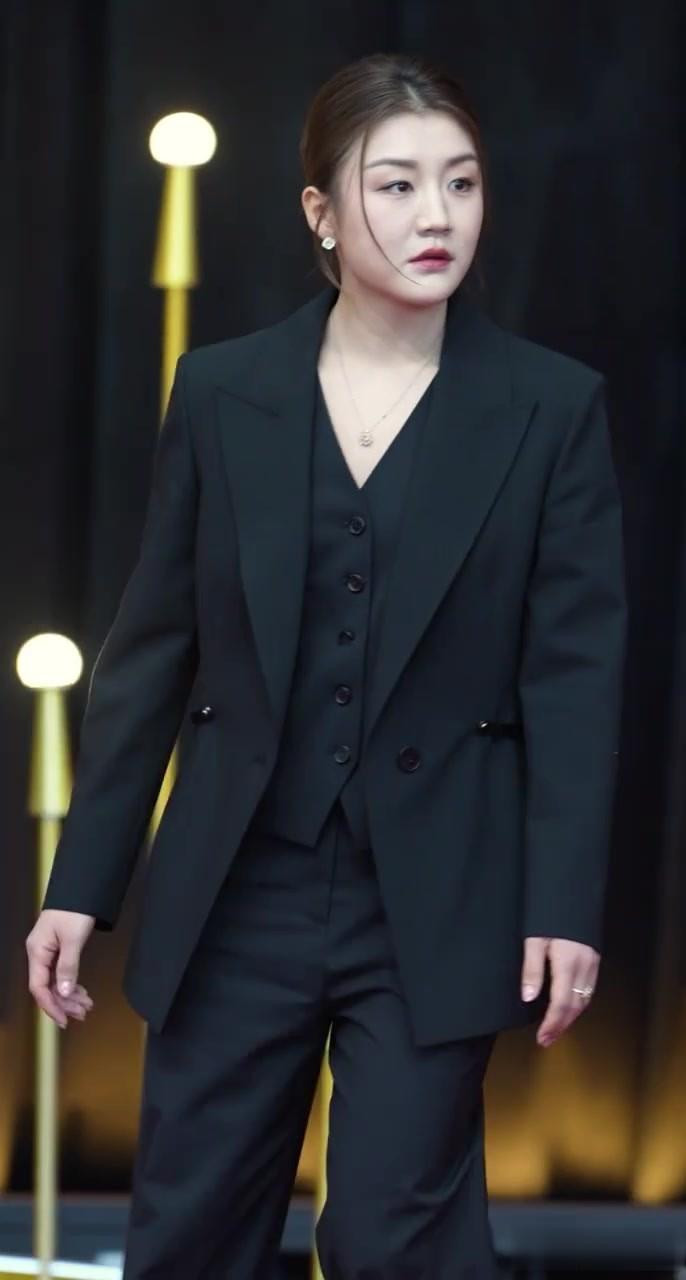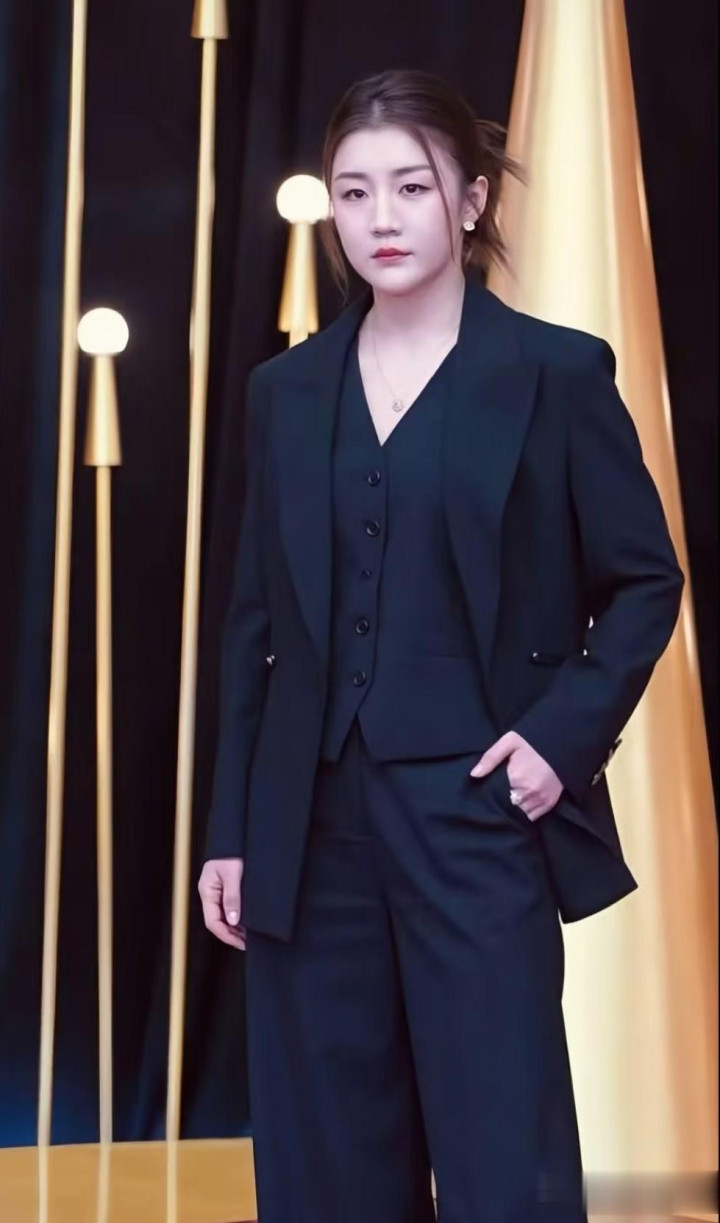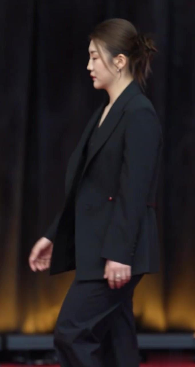陈梦出席代言人影响力盛典红毯, 穿黑色西服套装, 妥妥大女主气场