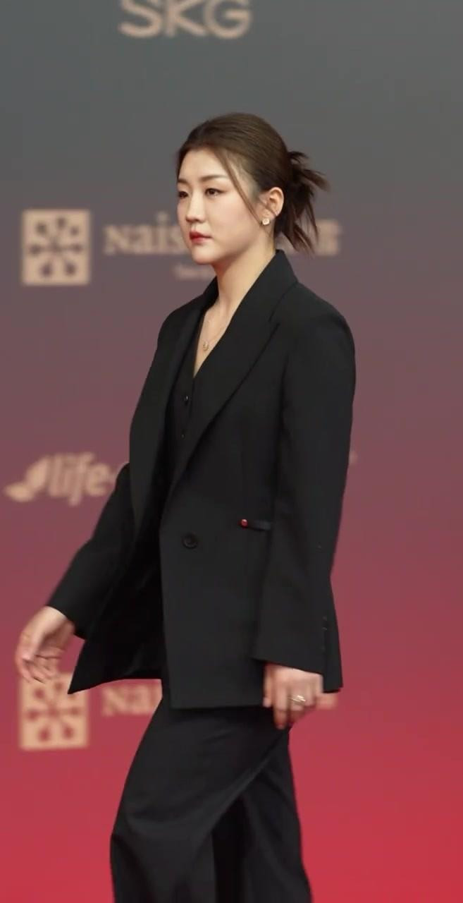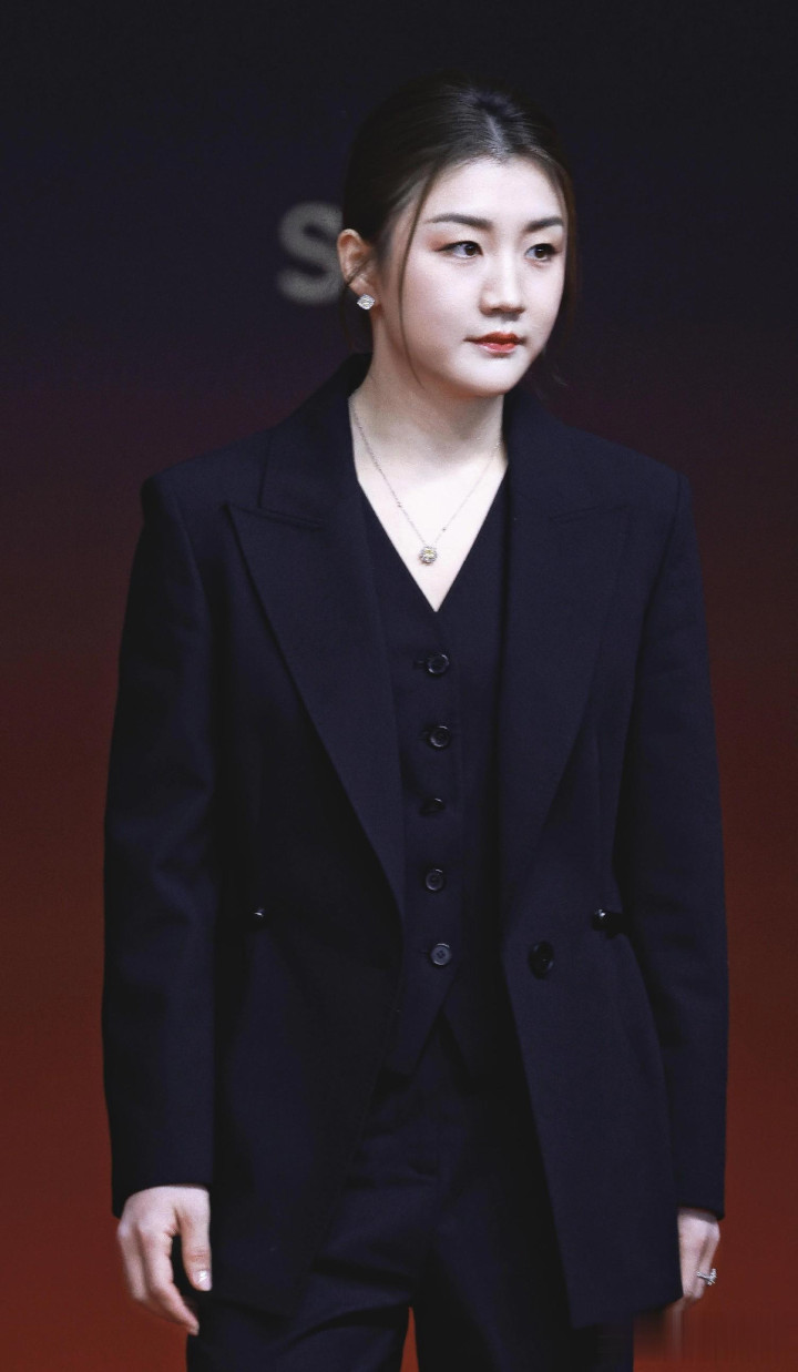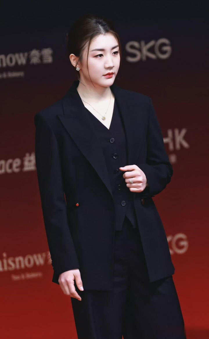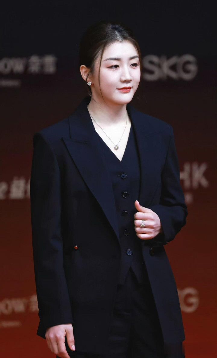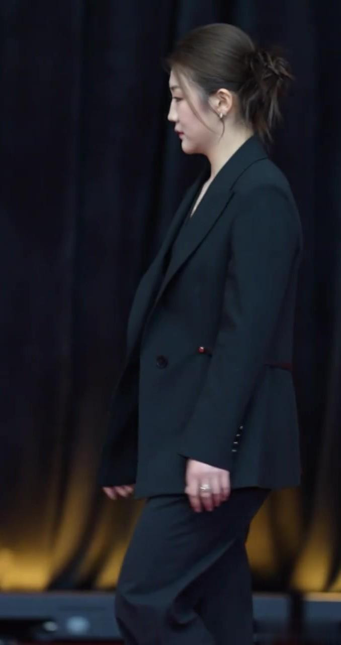 陈梦出席代言人影响力盛典红毯, 穿黑色西服套装, 妥妥大女主气场