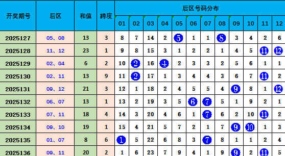 上期凤尾为奇号:23,近10期凤尾共开出奇号8枚,开出偶号2枚;综合分析,本期推荐凤尾号码为偶数34。