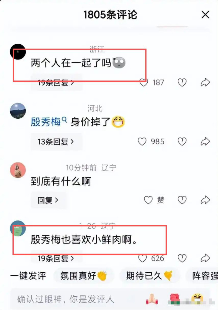 “两人在一起了吗”“殷秀梅也喜欢小鲜肉啊”等言论层出不穷。