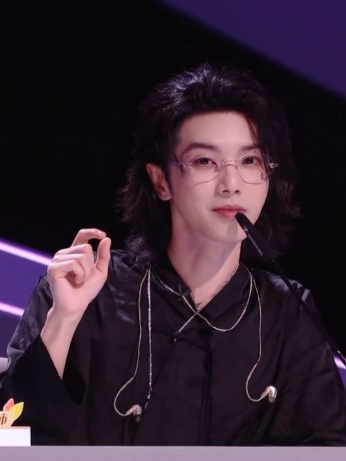 当天,华晨宇穿了一身黑色西装,搭配微卷中长发,文艺范十足。