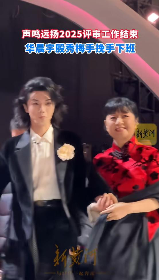 在离开舞台时,华晨宇与殷秀梅并肩而行。