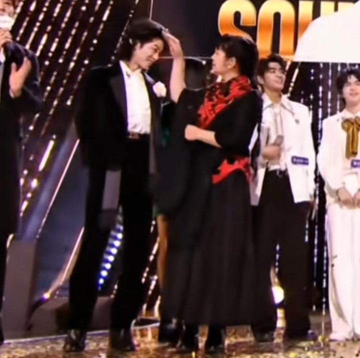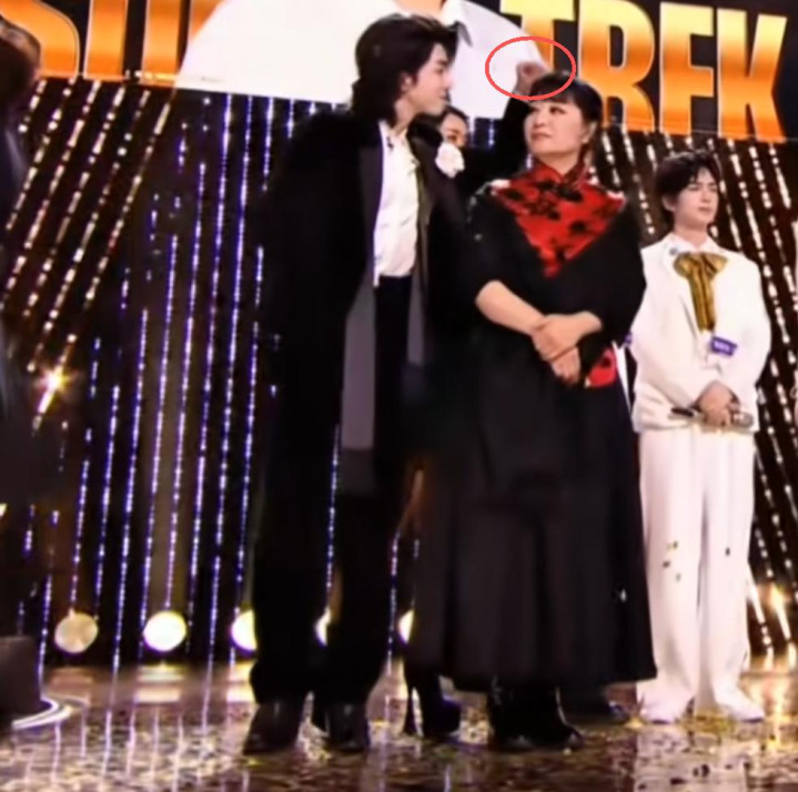 同样的,殷秀梅随后也替华晨宇拿掉了落在头发上的彩带。