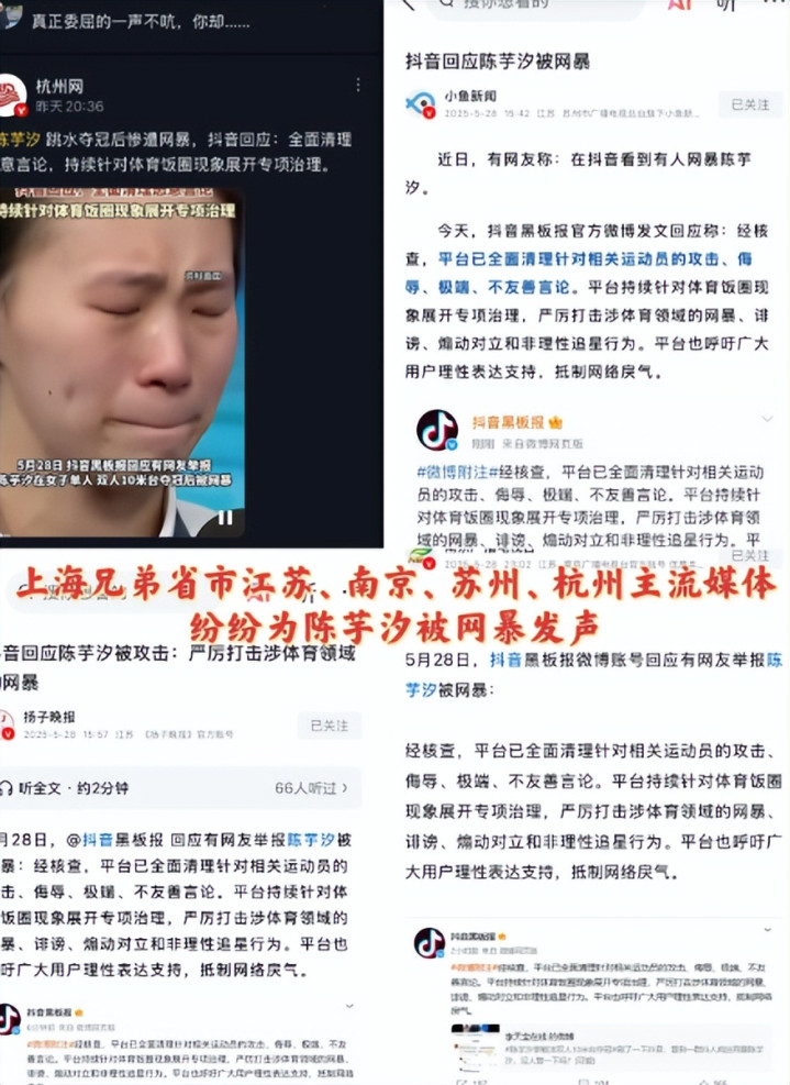 可霸凌群曝光后,有传言说陈芋汐也在群里,甚至长期默许群里辱骂全红婵,从未制止。