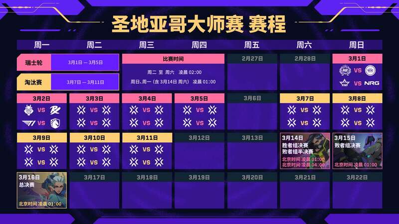 中国青年报客户端北京2月28日电(实习生陈佳星中青报·中青网记者梁璇)北京时间3月1日至16日,2026无畏契约圣地亚哥大师赛将正式开赛,来自VCTCN、EMEA、太平洋、美洲四大赛区的12支队伍将角逐本赛季首个大师赛冠军。其中,AG、XLG、EDG三支战队从2026VCTCN联赛启点赛脱颖而出,将代表CN赛区征战本次赛事。