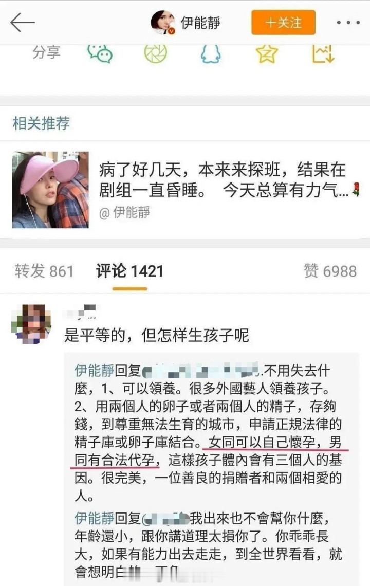 但网友们的关注点却不在那里,怒斥伊能静秦昊作为明星人物,居然支持“代孕”。