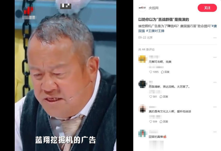 就连央视都转发唐国强的这段回应视频,表示支持。