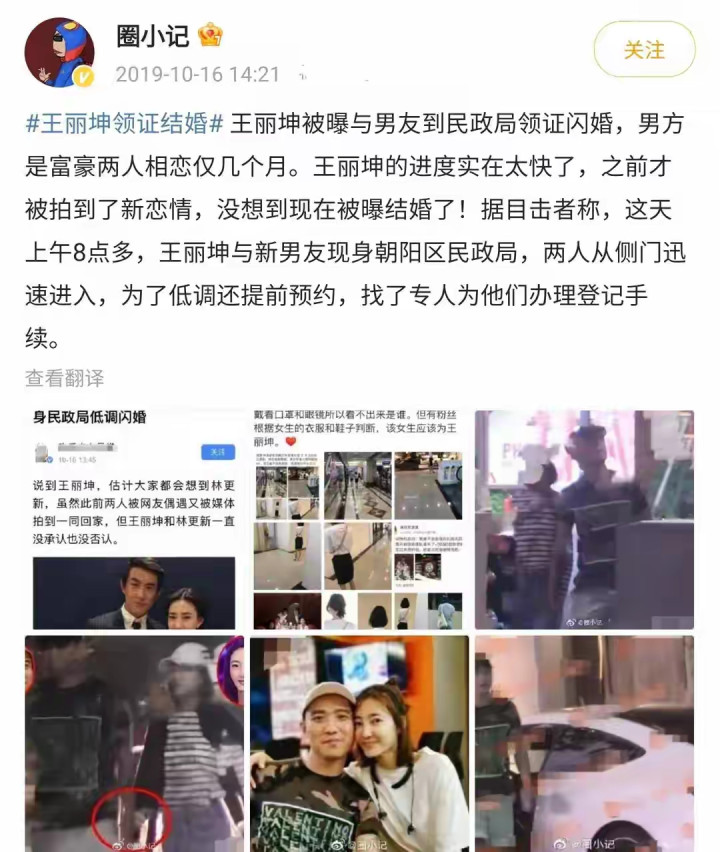 2019年10月,狗仔突然爆料王丽坤已与富豪詹浩礼登记结婚,两人从认识到领证仅用了几个月。