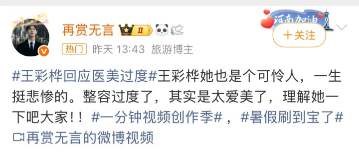 王彩桦也并未感到生气,甚至,自己发视频调侃自己。