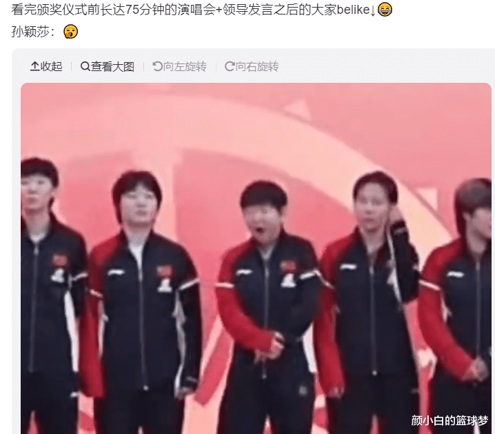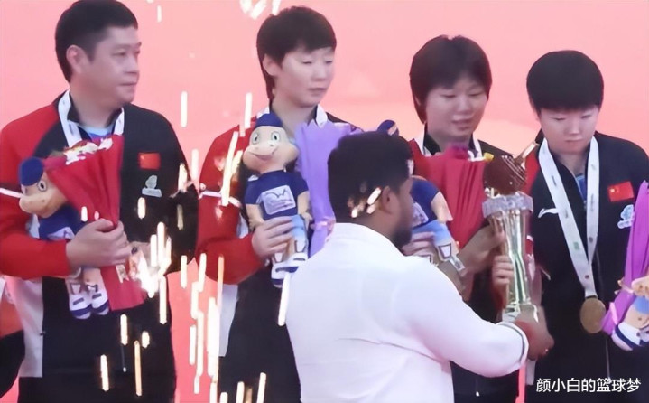 但在颁奖典礼时C位就是孙颖莎,颁奖典礼之前有长达75分钟的演唱会+领导发言之类的活动,小魔王孙颖莎已经等到打哈欠了,从这里莎莎就一直站在C位上。