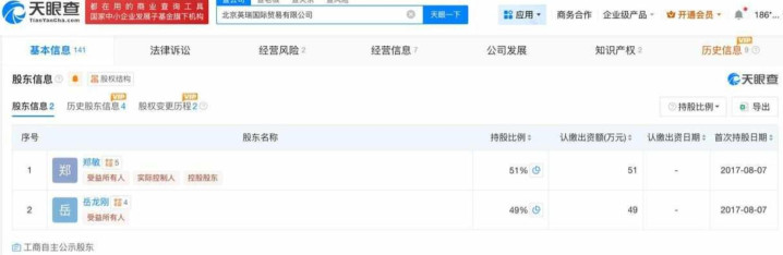 该公司成立于2014年8月,由岳云鹏持股49%,担任监事,他的妻子郑敏持股51%,担任法定代表人。
