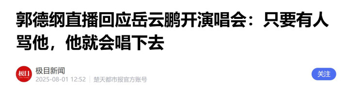 眼看舆论失控,师父郭德纲不得不出面力挺:“又不违法,他愿意唱就让他唱,唱完真赔了,他不就改了吗?”